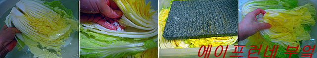 요점은 4-6등분한 통배추를 행굴물 10-15리터의 물에 행구어 물 안빼고 곧바로 소금을 켜켜이 묻혀야 되는데 몇번 실습해야 될거에요